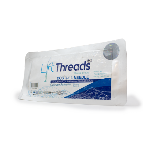 El hilo viene precargado en una cánula punta semi-roma (L-NEEDLE o L-Type Cannula) de calibre 19G y 125 mm de longitud. La cánula L-Type es ideal para procedimientos de Lifting porque permite trabajar en el plano subcutáneo profundo de manera menos traumática que una aguja cortante, minimizando el riesgo de dañar estructuras vasculares y nerviosas. La longitud de 125 mm es óptima para crear largos vectores de tracción que sostienen el óvalo facial y el cuello. El PDO es completamente reabsorbible y, durante su reabsorción (6 a 12 meses), actúa como un potente bioestimulador, reforzando la estructura de colágeno y manteniendo el resultado a largo plazo.